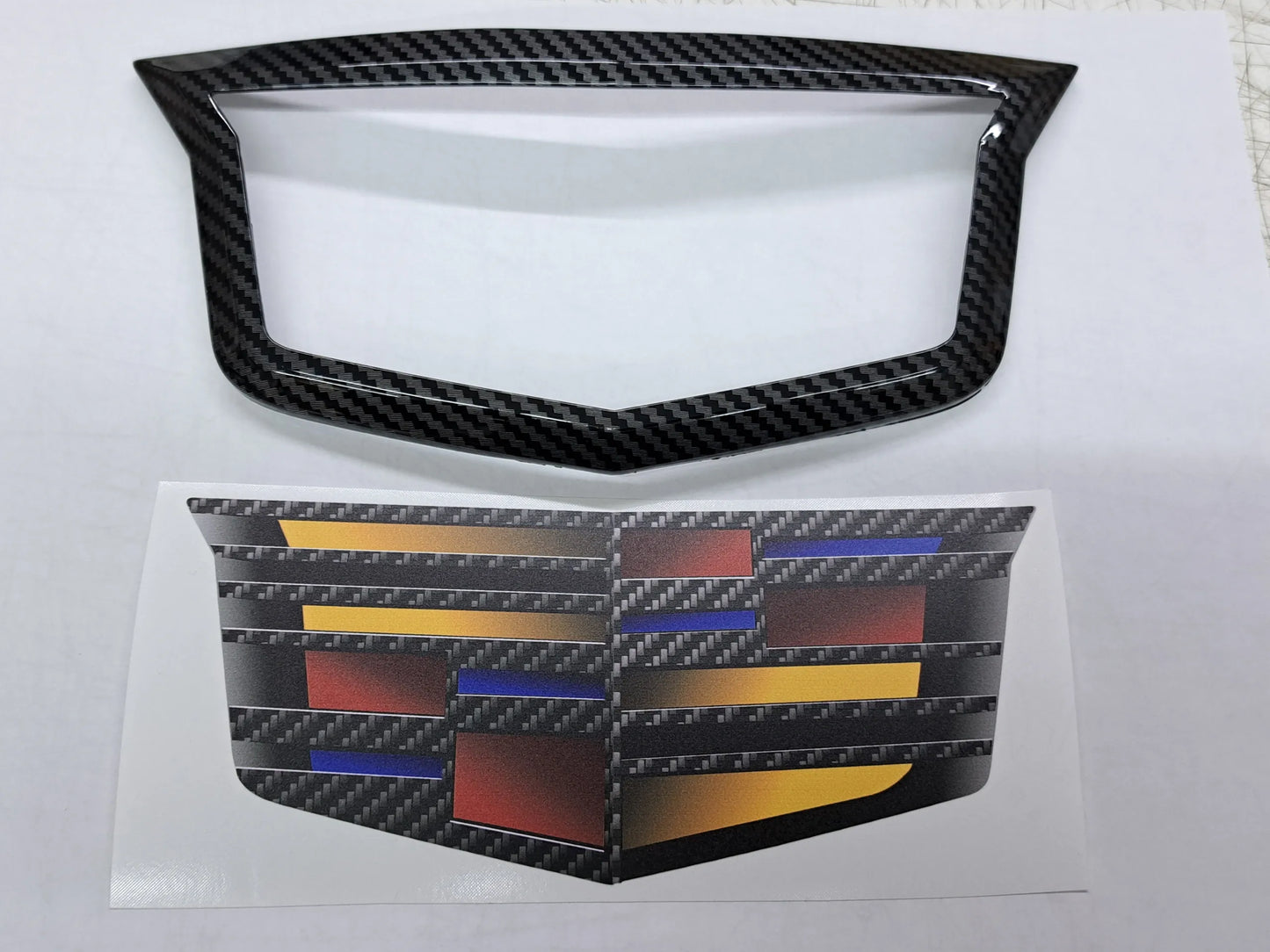 Boldly & easily stylize your Blackwing's front Cadillac Shield without disrupting or relinquishing your car's Adaptive Cruise lasering system which is stationed directly behind your car's front OEM Cadillac Shield. This is the easiest & most cost effective way to upgrade your Adaptive Cruise Front Badge— without exception!