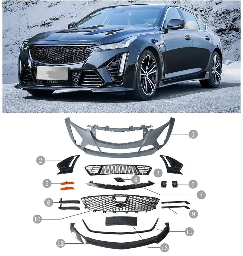 Cadillac 2020-2024 CT5-V 13 Piece "Blackwing" Front End Conversion Kit w/ Gloss Back or Carbon Fiber Front Splitter