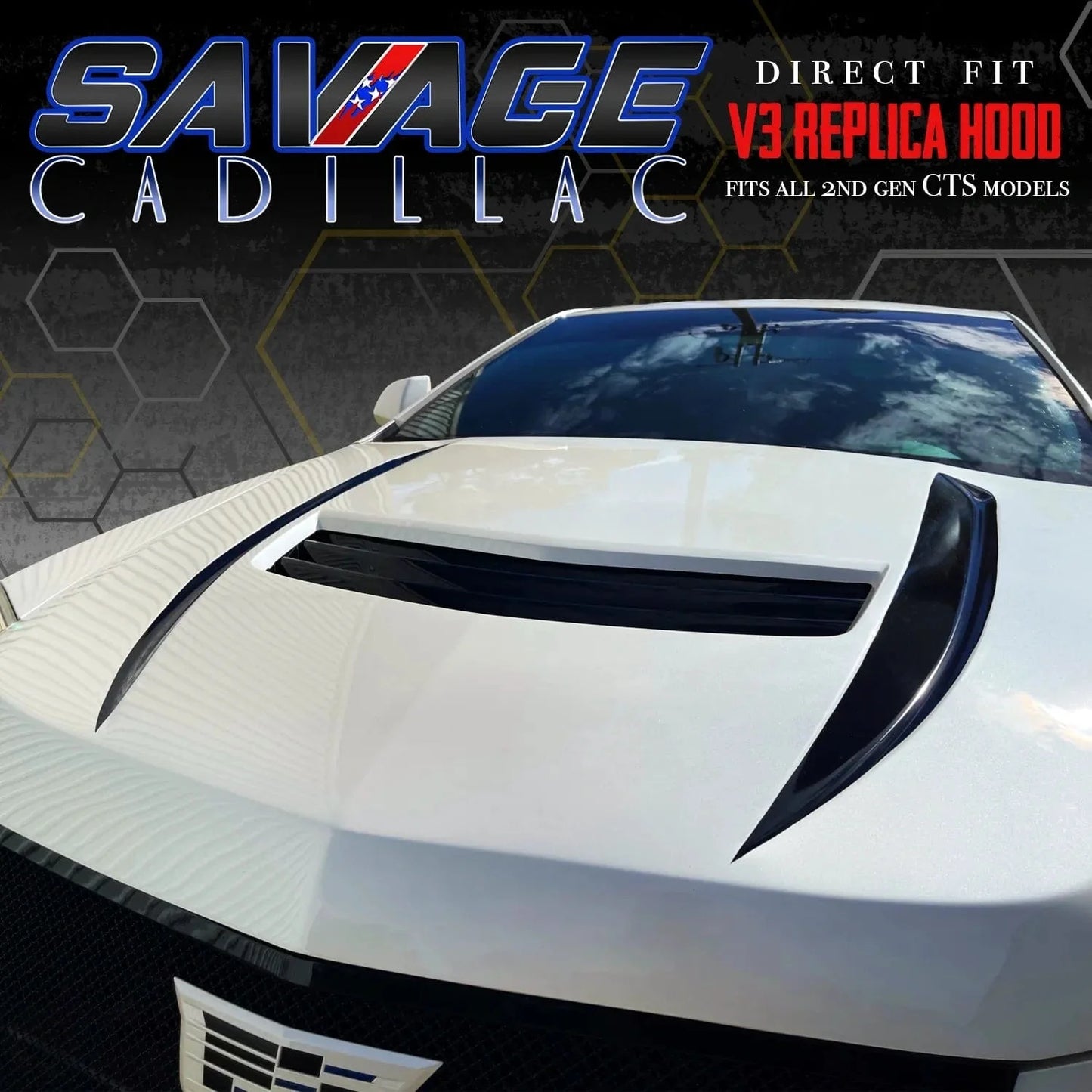 The Savage Cadillac 2008-2014 2nd Gen CTS Sedan, Coupe & Wagon "CTS-V3-Style" Replica Hood is a direct-fit upgrade that adds an aggressive edge to your 2nd Generation CTS! Give your car the boost it deserves! Choose between raw finish or gloss black painted extractor vents. All hoods are made to order in-house here at Savage Cadillac & will take 2-6 weeks to ship upon order placement.