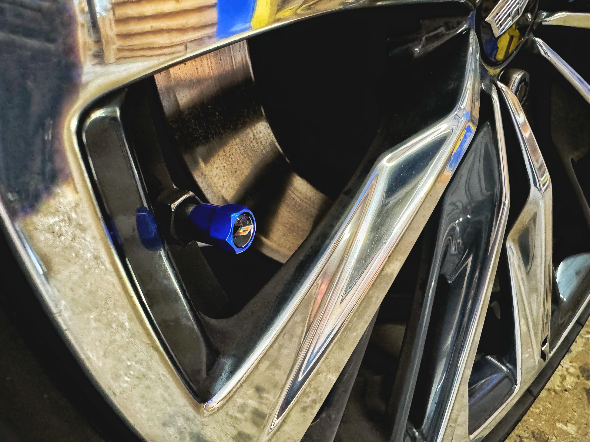 Introducing our Cadillac "V-Series" Metallic Blue Valve Stem Caps! A sleek & stylish accessory for your vehicle. Featuring the iconic "V-Series" logo in 5 vibrant color choices! These valve stem caps are the perfect addition to showcase your love for the V-Series brand. Designed for Cadillac enthusiasts— these premium valve stem caps add a touch of smooth elegance to your wheels!