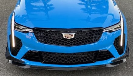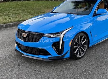 The Savage Cadillac CT4-V Blackwing "Spec-2" Style Front Splitter with Dive Plane Front Canards in Carbon Fiber or Gloss Black Fiberglass! These are exclusively compatible with your CT4-V Blackwing! Get that all-out aero functionality, performance & aggressive look for your Blackwing now!